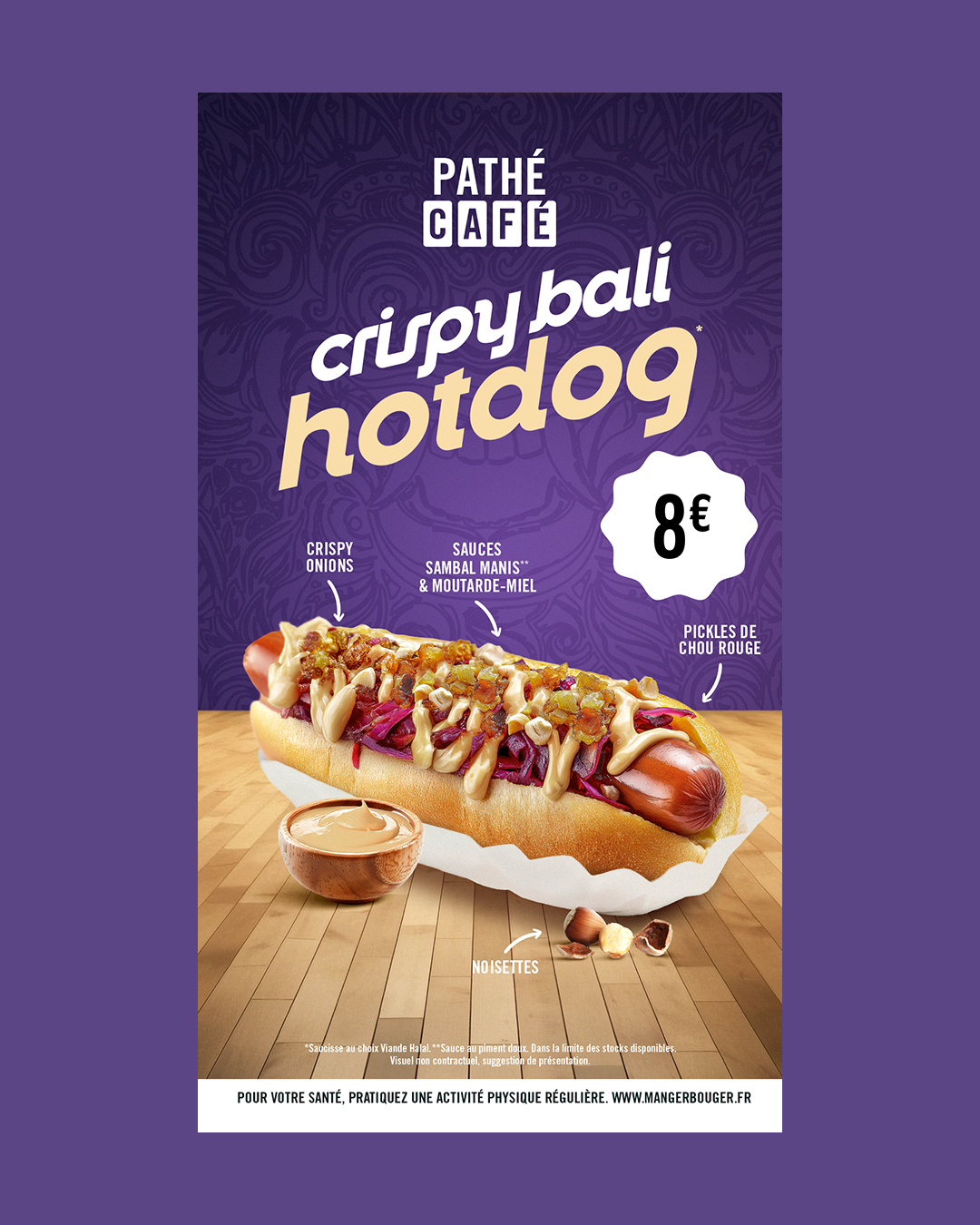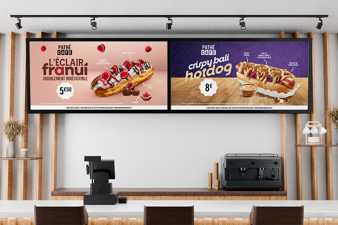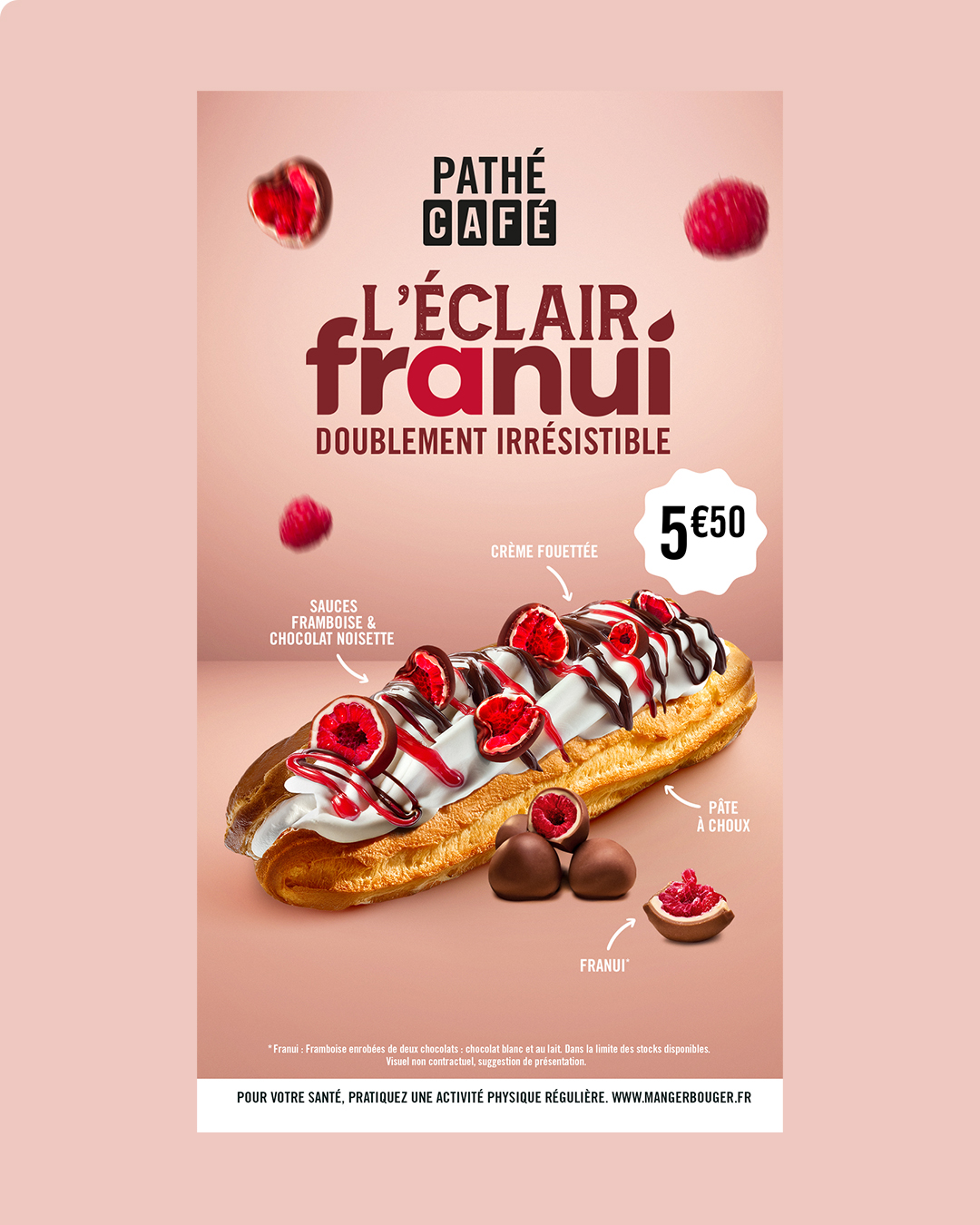 Une création 100 % sur-mesure, pensée pour s’harmoniser avec l’univers Pathé tout en mettant en avant le caractère gourmand et immédiat de l’offre.