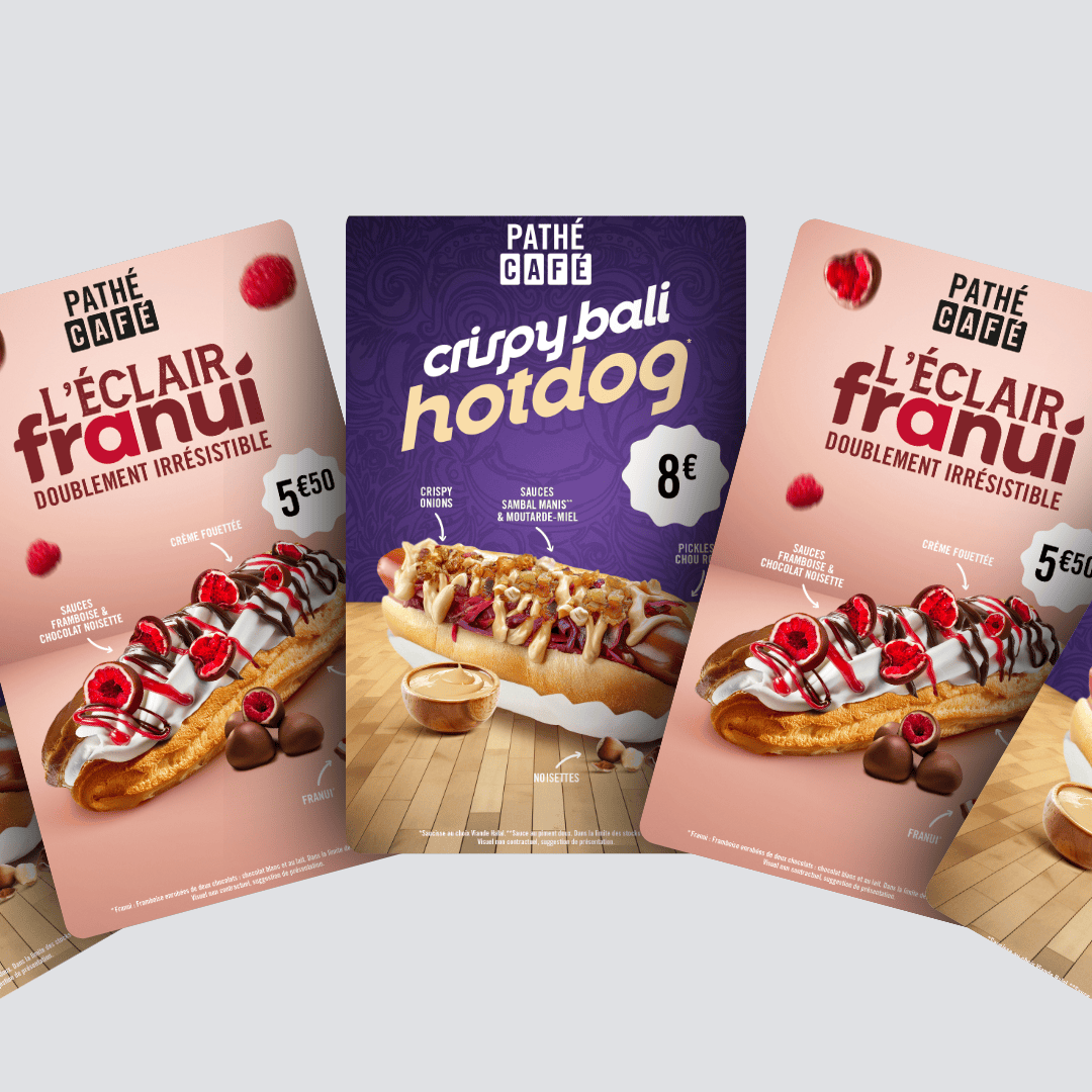 Quand Pathé Café a lancé sa nouvelle offre Food & Drinks, l’objectif était clair : créer une identité visuelle qui capte l’attention et donne envie dès le premier regard.